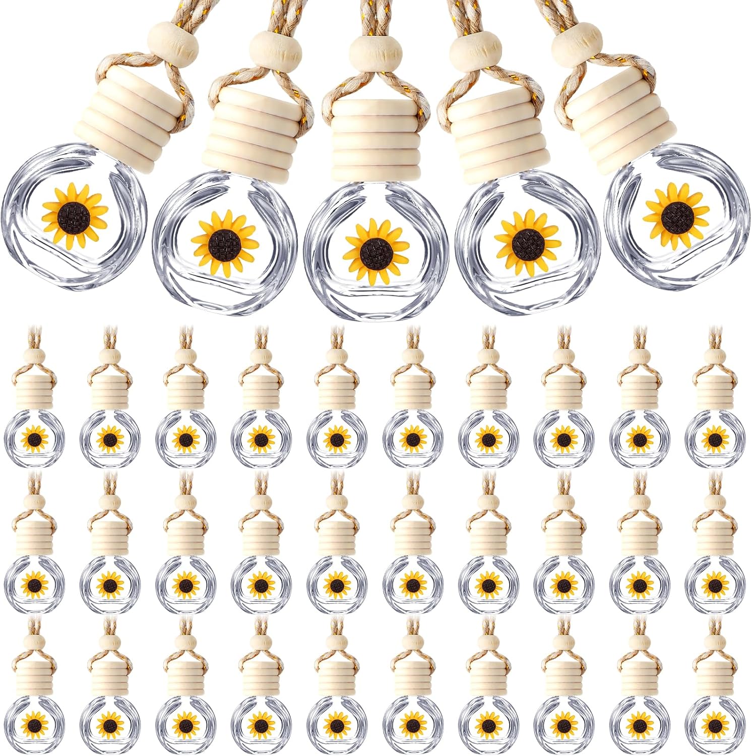 50 Pcs Hanging Car Air Freshener Car Diffuser Bottles Empty Glass Perfume Bottle Freshener Diffuser Bottle Pendant for Essential Oil Fragrance Aromatherapy Bottle Ornament(Clear,Sunflower)
