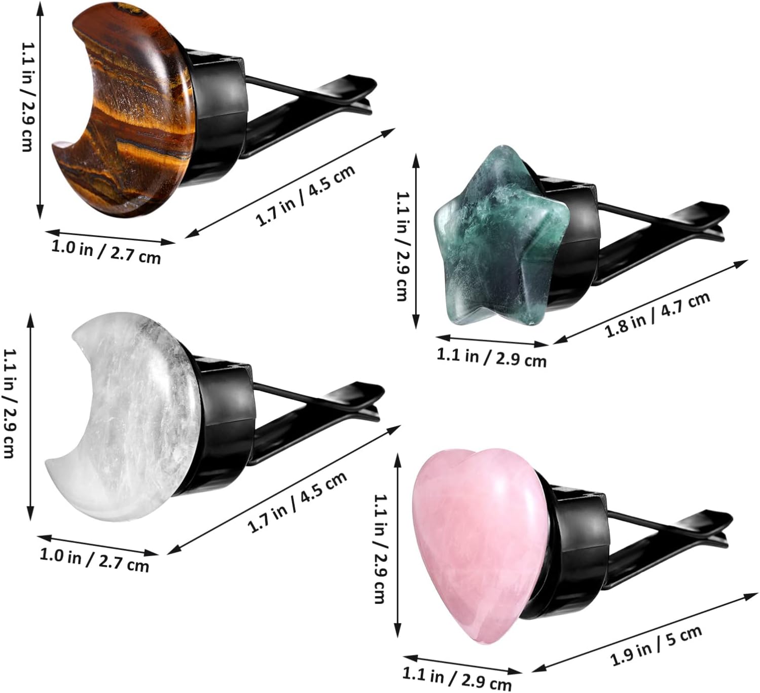 Aromatherapy Stone Car Vent Clips 4Pcs Natural Crystal Air Fresheners Decorative Car Interior Accessories with Moon Heart Star Shapes